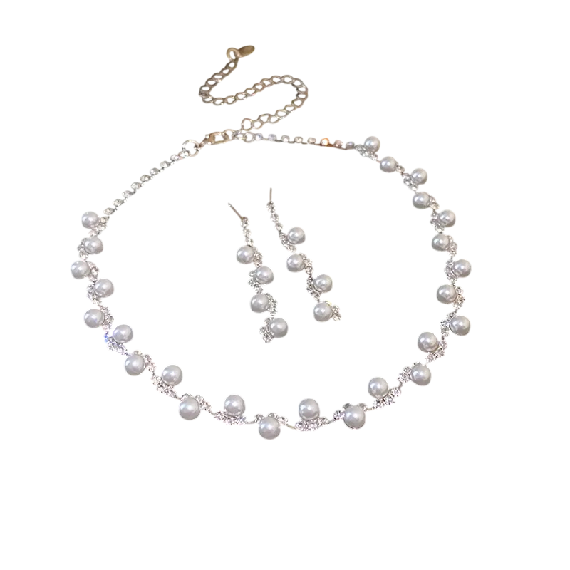 Startseite Startseite Schmuck und Uhren Schmuck und Uhren für Damen Halsketten für Damen Überdurchschnittliches Perlen-Set aus Kupferlegierung mit Halskette und Ohrringen Leichter luxuriöser Schmuck für Frauen Elegantes Accessoire für Hochzeiten und Partys