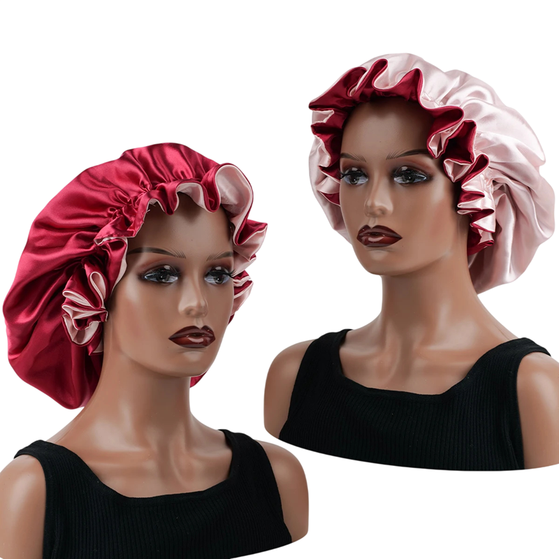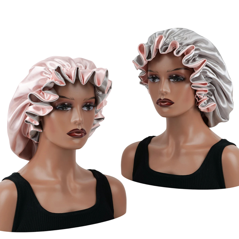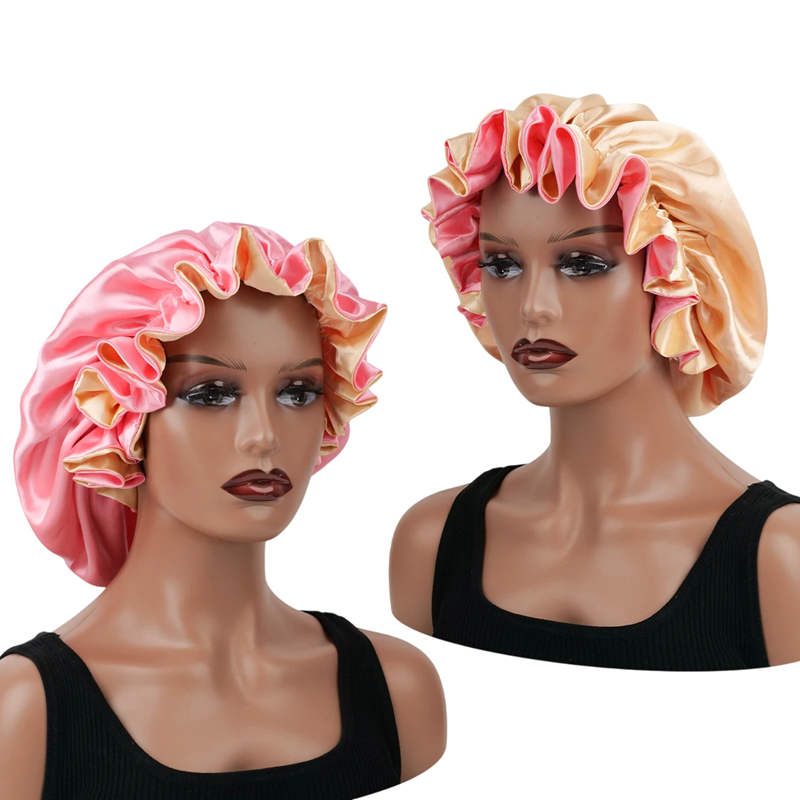 Zweilagige Satin Schlafmütze aus Polyester, universelle Größe, ideal zum Schutz der Haare während des Schlafs. Geeignet für Männer und Frauen. Vollständige Beschreibung