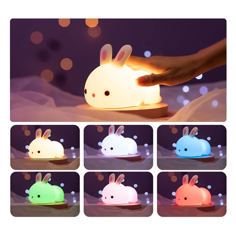 USB wiederaufladbare Silikon RGB LED Nachtlicht mit Hasenmotiv 16 Farben mit Touch-Sensor Kinderlampe für das Schlafzimmer
