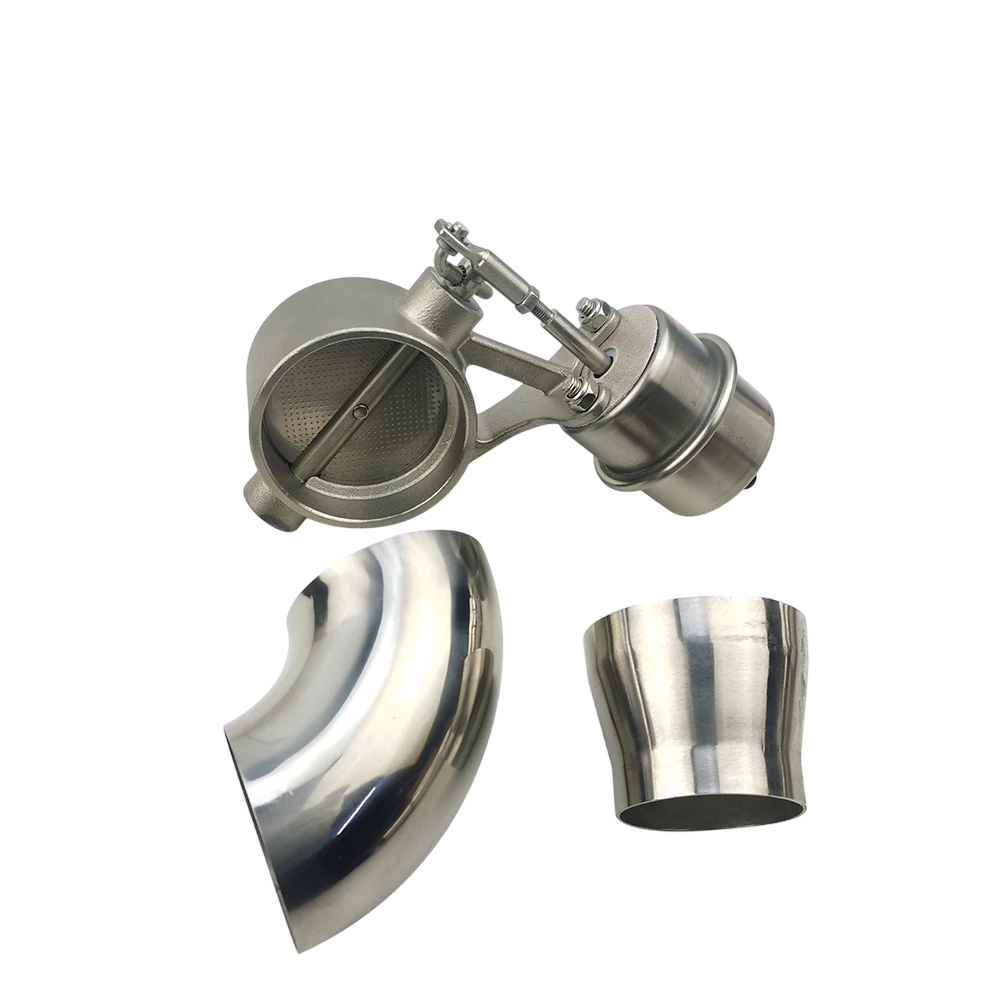Universelle Edelstahl Vakuumklappe 76 mm für Auspuff, mit gebogener und gerader Rohr, einfache Installation, korrosionsbeständig und hitzebeständig. Vollständige Beschreibung