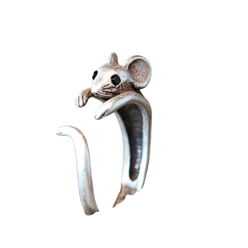 Verstellbare Größe Offener Damenring Maus Antik Silberfarbe Edelstahl Tierischer Schmuck für Tierliebhaber