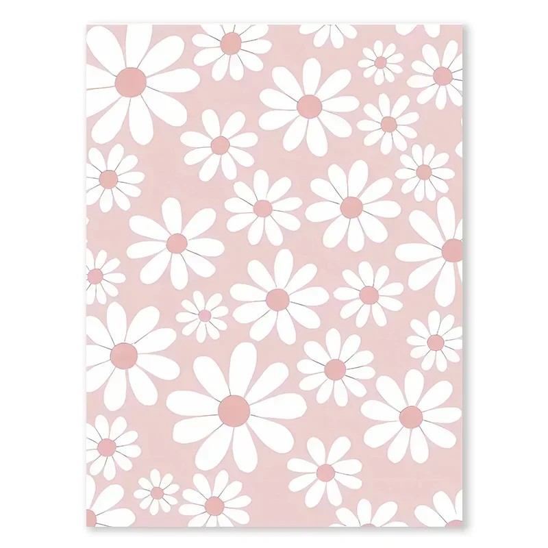 Wandplakat 30 x 40 cm Weiße Blumen rosa Hintergrund Leinwandbild ohne Rahmen Dekoration für das Mädchen- und Kinderzimmer Wandbild