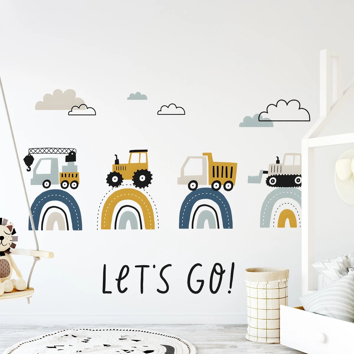Die Dekoration ist geeignet für das Kinderzimmer, Spielzimmer, Kindergarten und die Spielecke. Die Motive technischer Fahrzeuge, wie Bagger, Lkw und andere Arbeitsmaschinen, fördern die kindliche Vorstellungskraft und das Interesse an der Welt um uns herum. Die Installation ist einfach und kann ohne spezielles Werkzeug durchgeführt werden. Einfach auf eine saubere und glatte Oberfläche aufbringen und in kürzester Zeit verwandeln Sie den Raum ohne Malen oder Bohren.