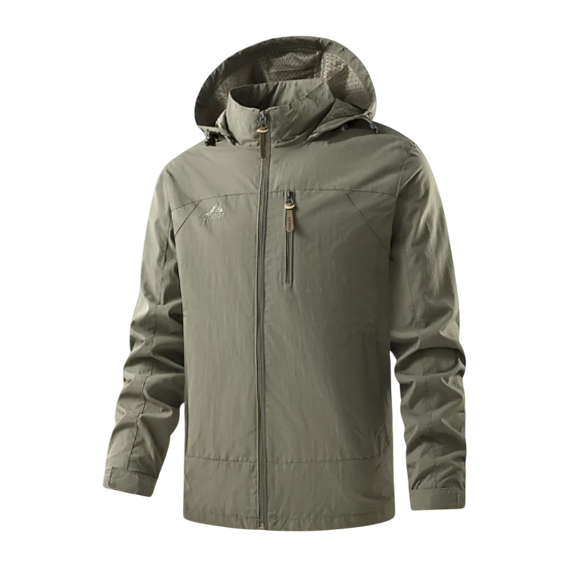 Funktionelle Herrenjacke zum Wandern und für den Alltag. Wind- und regenabweisend, mit Kapuze und praktischen Taschen. Vollständige Beschreibung
