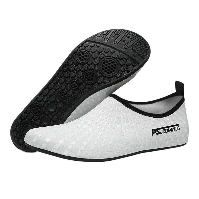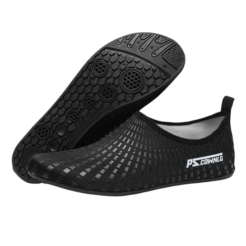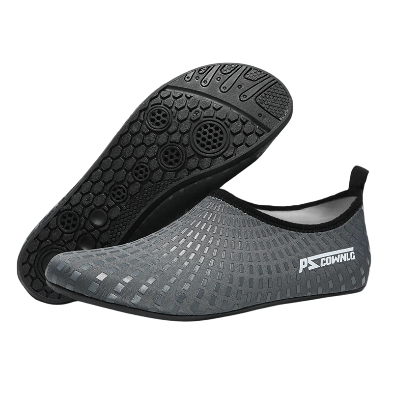 Die Unterseite ist mit einer strapazierfähigen Gummisohle ausgestattet, die die Füße vor scharfen Gegenständen schützt und gleichzeitig Stöße dämpft. Eine spezielle rutschfeste Beschichtung der Sohle minimiert das Risiko des Ausrutschens auf nassen Oberflächen. Dank der flexiblen Konstruktion passen sich die Schuhe leicht der Fußform an und ermöglichen eine natürliche Bewegung beim Schwimmen und Gehen im Wasser.