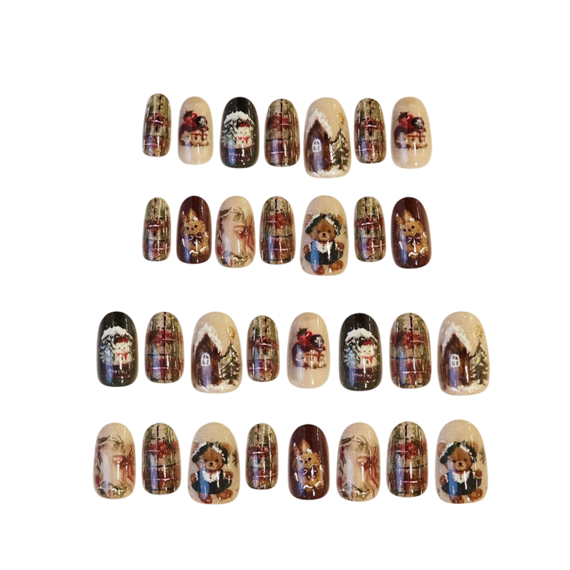 • 24 Stück falsche Nägel mit weihnachtlichen Dekorationsmotiven