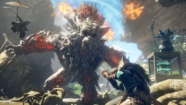 In WILD HEARTS können Sie einem Kemono alleine gegenübertreten oder sich mit bis zu zwei Freunden (oder Mitspielern) zusammenschließen, um Ihre Beute zu verfolgen und zu jagen.