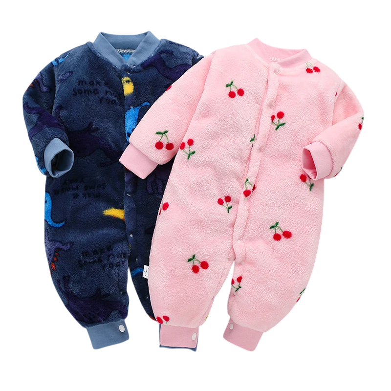 Startseite Startseite Kleidung und Accessoires Kinderkleidung Babykleidung Mädchenkleidung für die Kleinsten Baby Mädchenoveralls Winter- und Frühjahrsstrampler für Babys Roter Plüschflanellstrampler mit Kirschmuster Weiche Kinderbekleidung aus Polyester für Mädchen