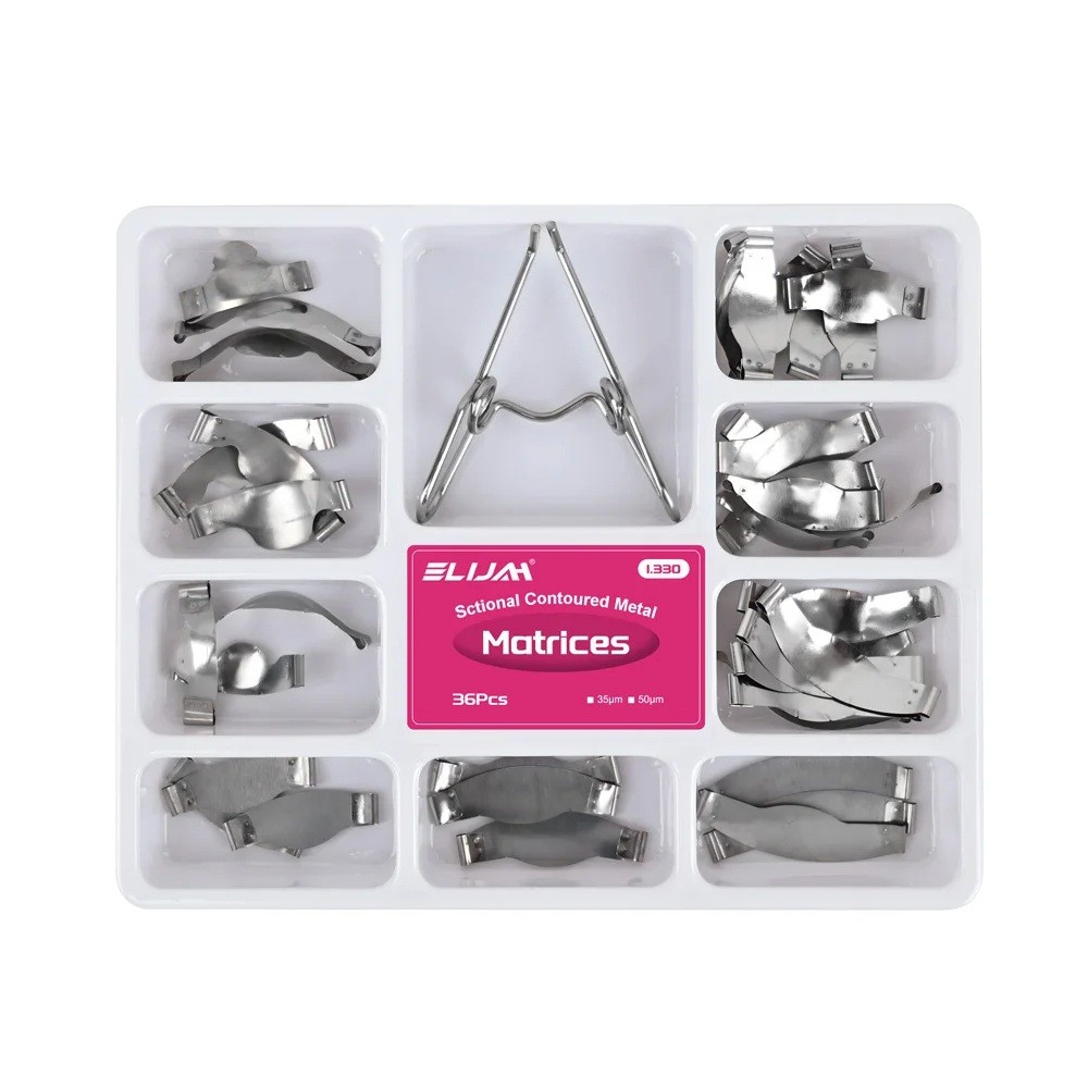 • Inhalt der Verpackung: 36 Stück Metallsektormatrizen, Federklemme, Spannwerkzeug