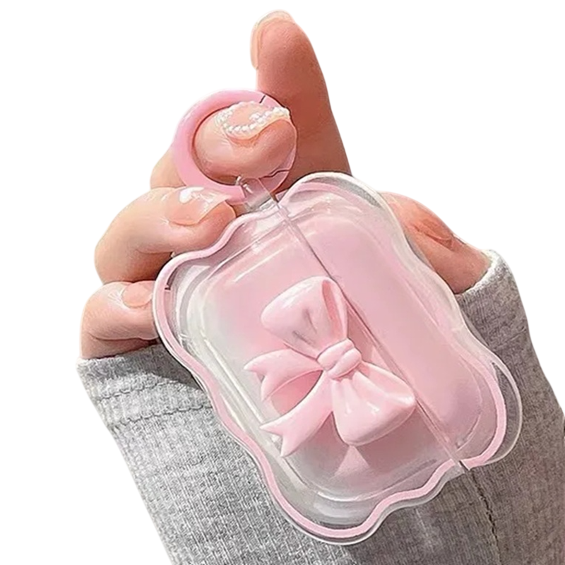 Zauberhafter 3D Schleifen Schutz für Apple AirPods Pro 2 mit gewelltem Design und Schlüsselanhänger. Dieser staubdichte Schutz schützt die Kopfhörer vor Kratzern und Stößen und bewahrt gleichzeitig ihr elegantes Aussehen. Vollständige Beschreibung