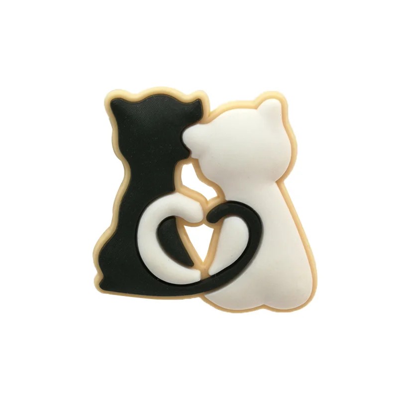 Das Zubehör für Crocs mit dem Motiv von zwei Katzen und einem Herz stellt eine stilvolle Dekoration dar, die das Aussehen der Schuhe einfach aufpeppen kann. Das Design zeigt zwei Katzen in kontrastierender Ausführung, die zusammen die Form eines Herzens bilden, was der Dekoration ein markantes und leicht erkennbares Aussehen verleiht. Diese Art von Dekoration ist zum Einstecken in die Löcher der Schuhe gedacht, sodass eine schnelle Stiländerung ohne komplizierte Installation möglich ist. Das Motiv eignet sich als zartes Detail für den Alltag sowie als thematisches Zubehör für Katzenliebhaber.