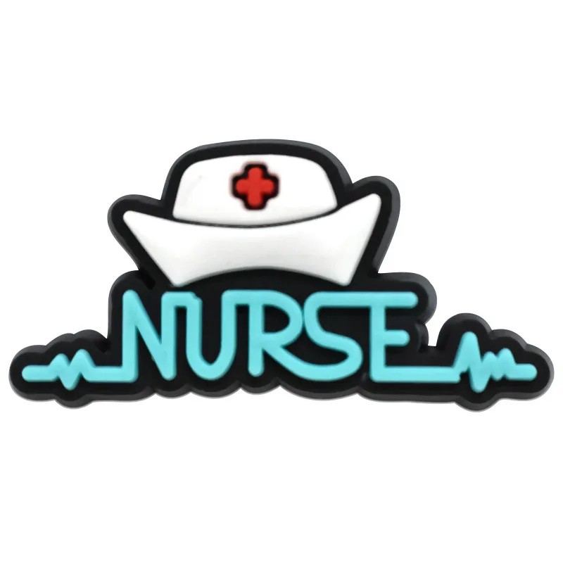 Der Zusatz für Crocs mit Krankenschwester-Motiv ist ein dekoratives Element zur Verschönerung des Schuhlooks. Das Design kombiniert den Schriftzug „NURSE“, eine medizinische Haube mit rotem Kreuz und eine grafische Linie, die an einen Herzschlag erinnert. Dadurch ist das Motiv leicht erkennbar und thematisch ausgerichtet. Die Dekoration eignet sich für den täglichen Gebrauch und kann als kleines Detail an den Schuhen verwendet werden.